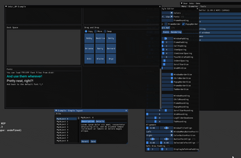 - In general, I've tried to wrap functions with identical arguments as their C++ counterparts, so you'll probably be okay to reference existing ImGui code. imgui_demo.cpp from the ImGui repo is super helpful!